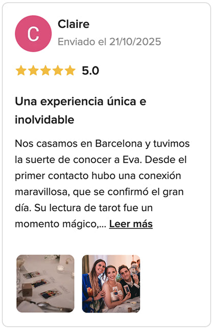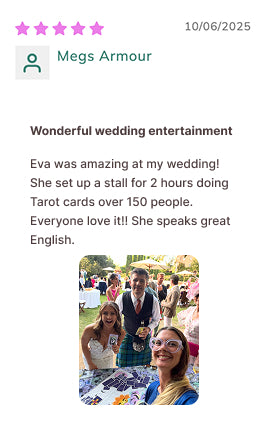 Offer your guests a positive and elegant tarot experience during weddings. Professional, multilingual sessions available in Barcelona and worldwide.