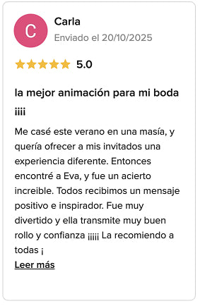 Eva tiene una sensibilidad especial para decirte con todo detalle que dicen tus cartas, ella no interviene ni determina que debes o no decidir, ella te guía te pone luz a las cosas que no ves, pero que probablemente sabes o no quieres prestar atención, o no tienes tiempo. Ordena tu panorama en el presente, te escucha a la hora de preguntar al tarot de qué deseas obtener información, y el tarot te habla, ella es el canal, te dice por qué razón salieron esas cartas y no otras, te responde con concisión, sin dar rodeos, te pregunta para saber si es ese camino y de ser así vais juntas. Muy revelador, mi primera lectura en mi vida y muuuuy contenta, en unos meses repito como te dije Evita!