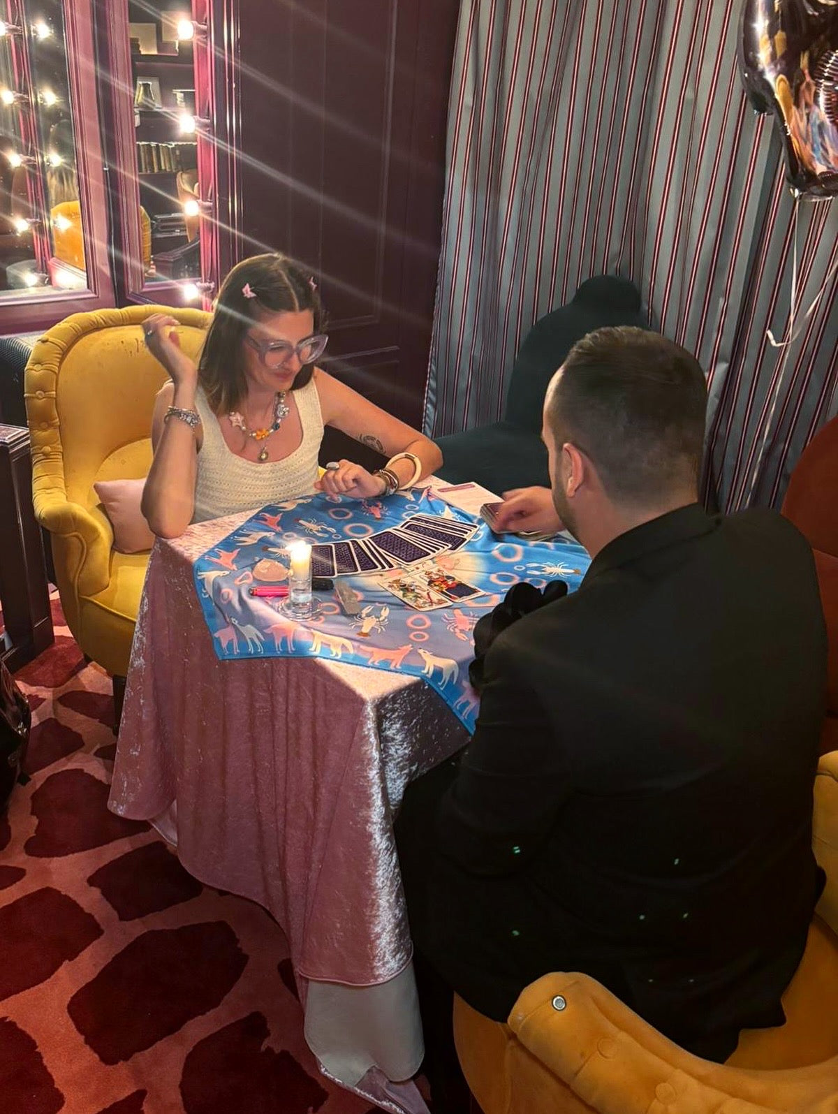 Yes. I work with tarot in a positive way, offering short intuitive readings or message cards for guests who feel called to receive one.